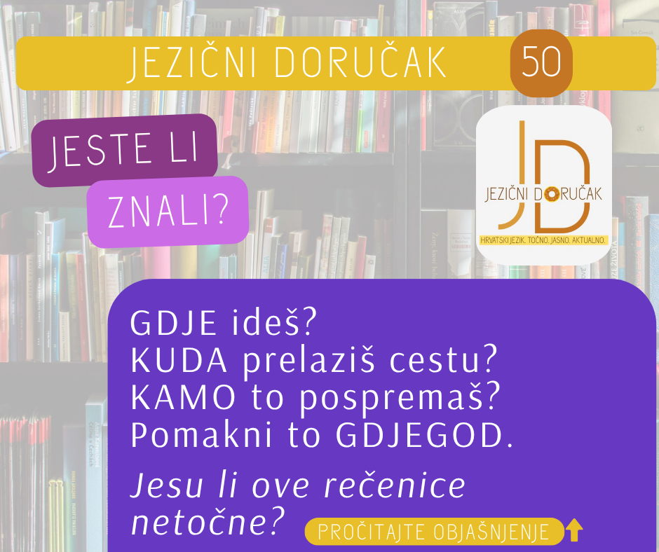Mjesni prilozi GDJE, KAMO i KUDA imaju različita značenja i zato i različite uloge u rečenicama. Često u razgovornim i lokalnim oblicima pitamo: Di ideš? pa onda i u standard ubacujemo: Gdje ideš? ALI to nije točno.