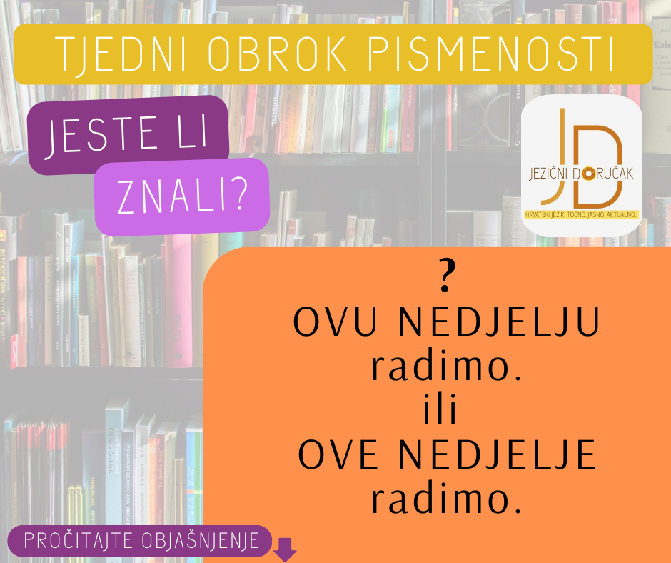 Što bi značilo da izrazu OVU NEDJELJU ne radimo. nedostaje prijedlog U.